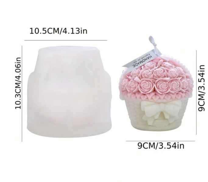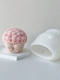 1 قطعة قالب سيليكون للشمعة ثلاثية الأبعاد على شكل وردة وسلة