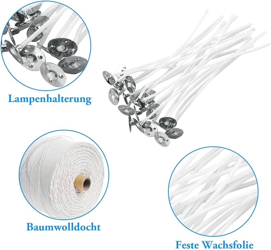 مادة آمنة: فتيل الشموع مصنوع من مادة قطنية عالية الجودة. المادة آمنة وصحية، لا يصدر دخان أسود عند الاحتراق، ووقت الاحتراق طويل واللهب يكون أكثر استقرارًا وثباتً
