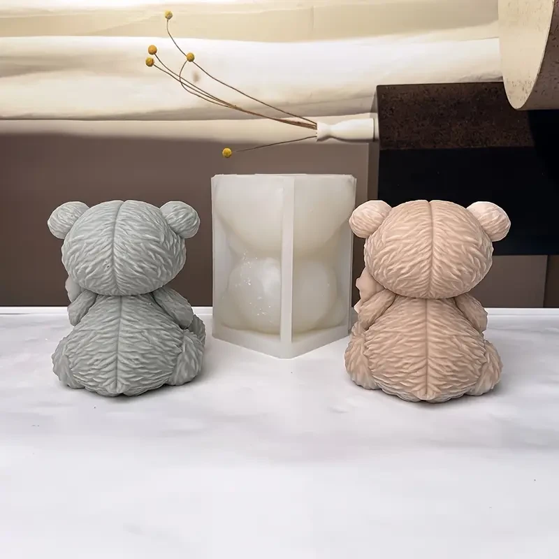 قوالب شموع دب تيدي من السيليكون مع رباطات عنق،
