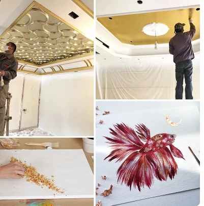-الاستخدام:يمكنك استخدام الغراء للصق جميع أنواع رقائق الذهب وأوراق الشجر. بعد الانتهاء من رقائق الذهب ، يمكنك طلاء الورنيش لحمايته. أو يمكنك مزجها مع صبغة مسحوق اللؤلؤ لرسمها على العناصر