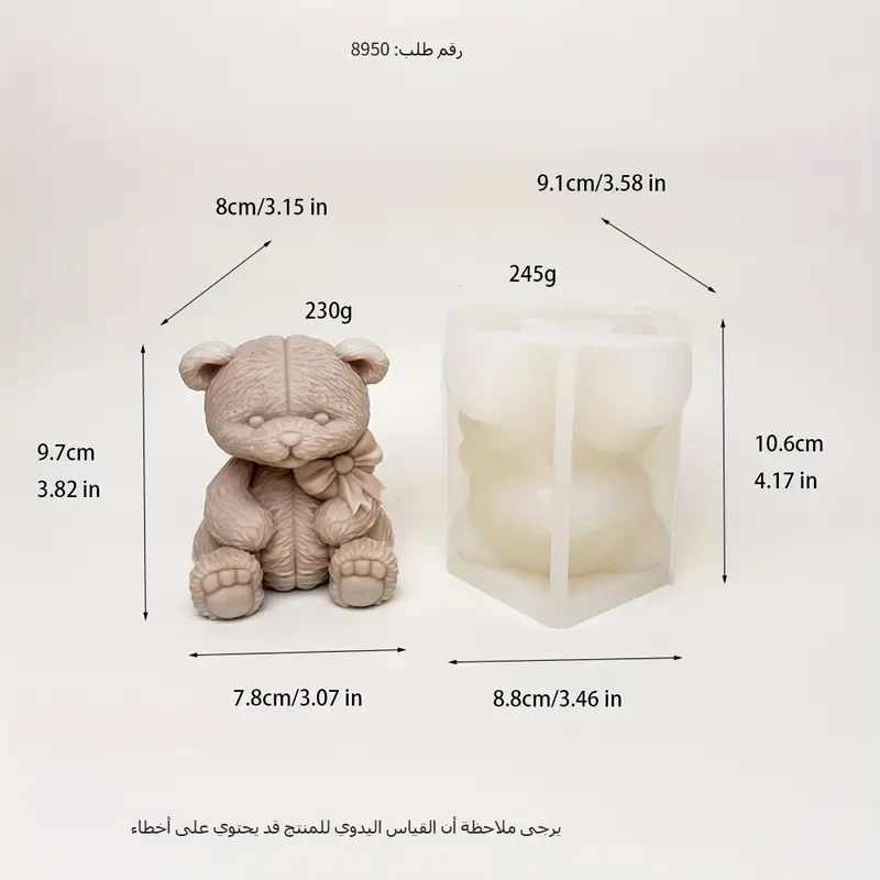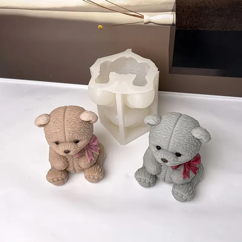 قوالب شموع دب تيدي من السيليكون مع رباطات عنق،