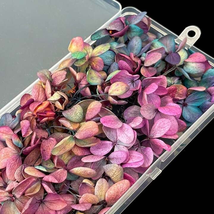 صندوق ورود هايدرنجيا مجففة متعددة الألوان عالية الجودة - مثالي للحرف اليدوية والشموع والأعراس والحرف اليدوية